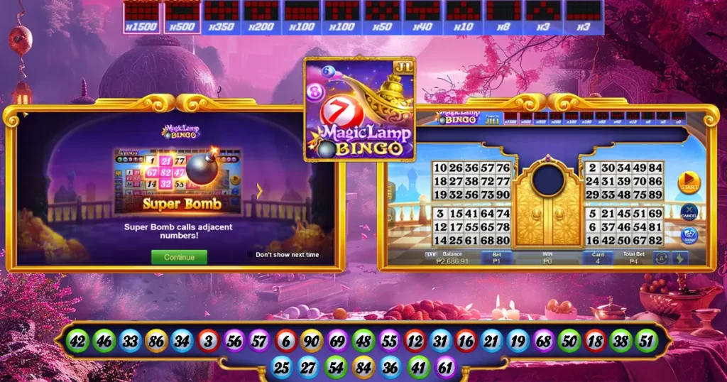 The classic bingo is enjoyable but it can be tiresome. Jili chose to make things interesting to the contemporary Filipino player. Magic Lamp Bingo, is a game where you play bingo with cards that are mystical; in place of boring cards, you are provided with a bonus round and a Super Bomb, which makes you win faster. The theme is made quite clear: it is an Arabian-Nights meets online casino bingo: floating lamps, swirling numbers, extra draws. This game is unique to Pinoy players who want the use of colours and fast-paced games that are still familiar to them. It brings the bingo card to the modernised world with animation, instant rewards and interactive experience without losing the aspect of just matching the numbers.